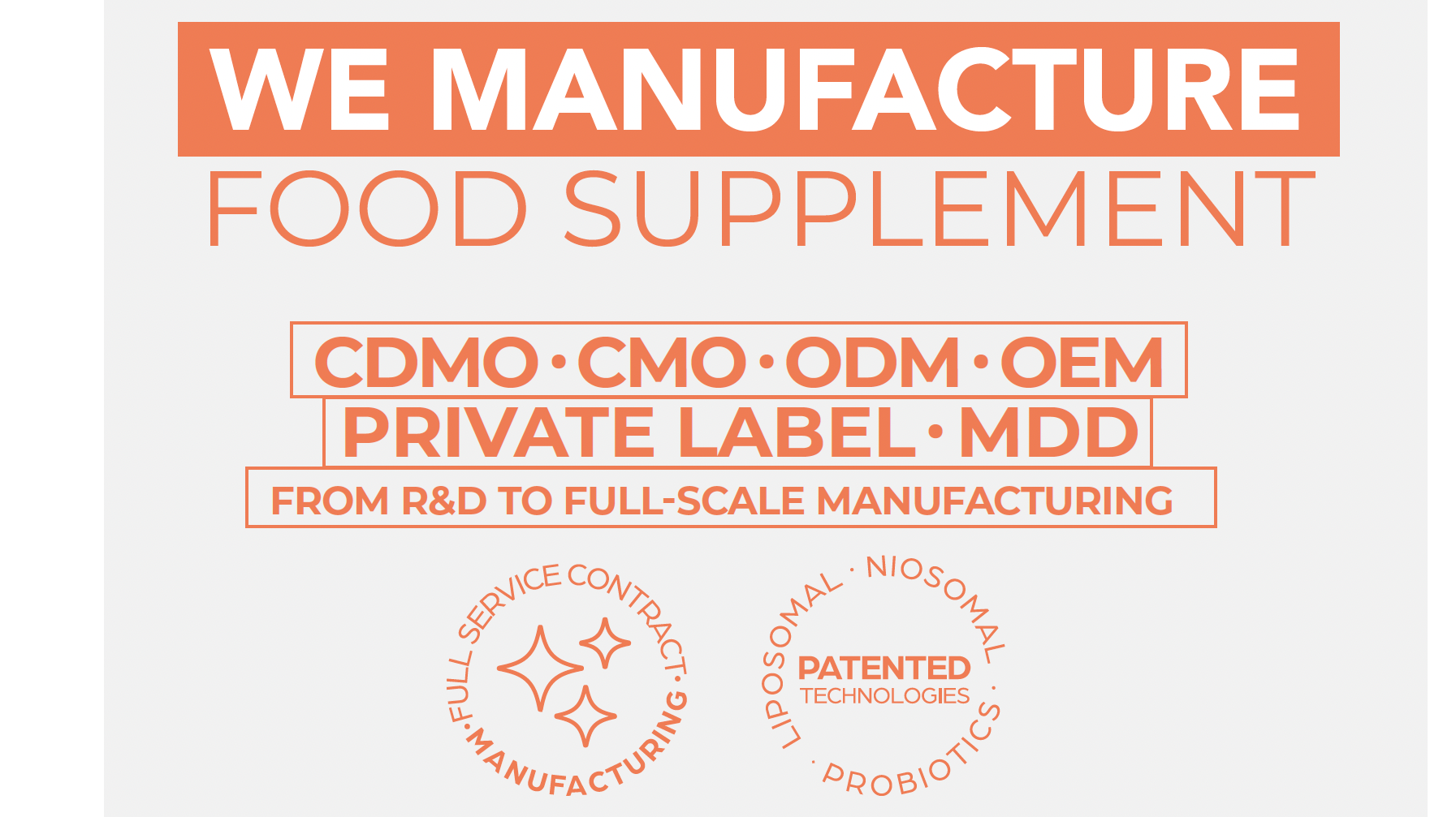 4- Industrial Manufacturing — Powders, capsules, liquids, shots, liposomes, niosomes