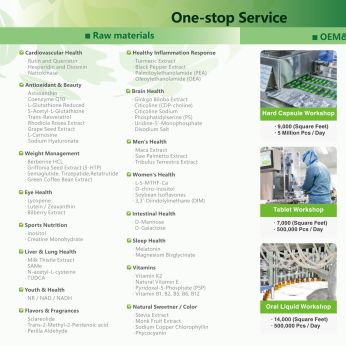 - One stop serivce: from raw materials to OEM&ODM, kinds of capsules, tablets, gummy, solid drinks,